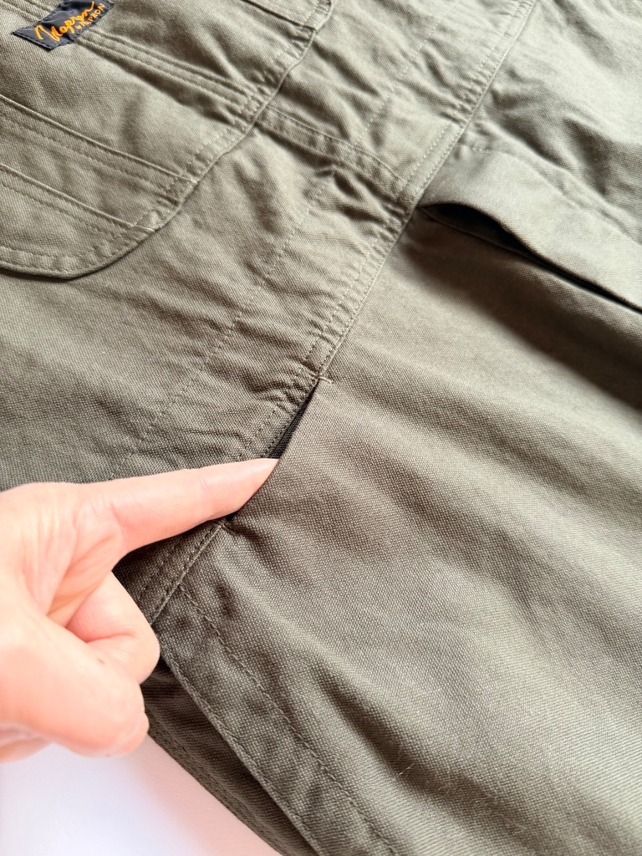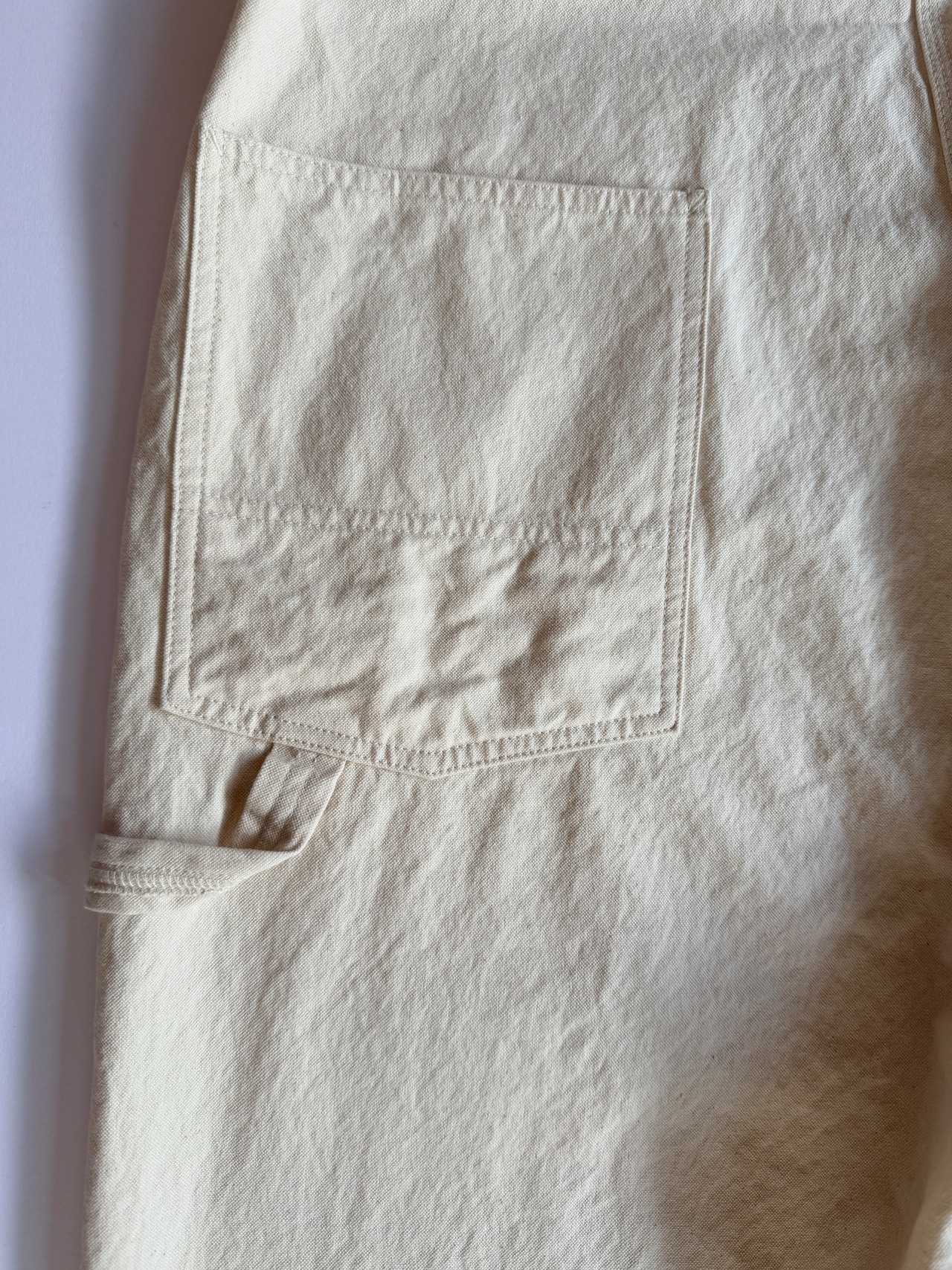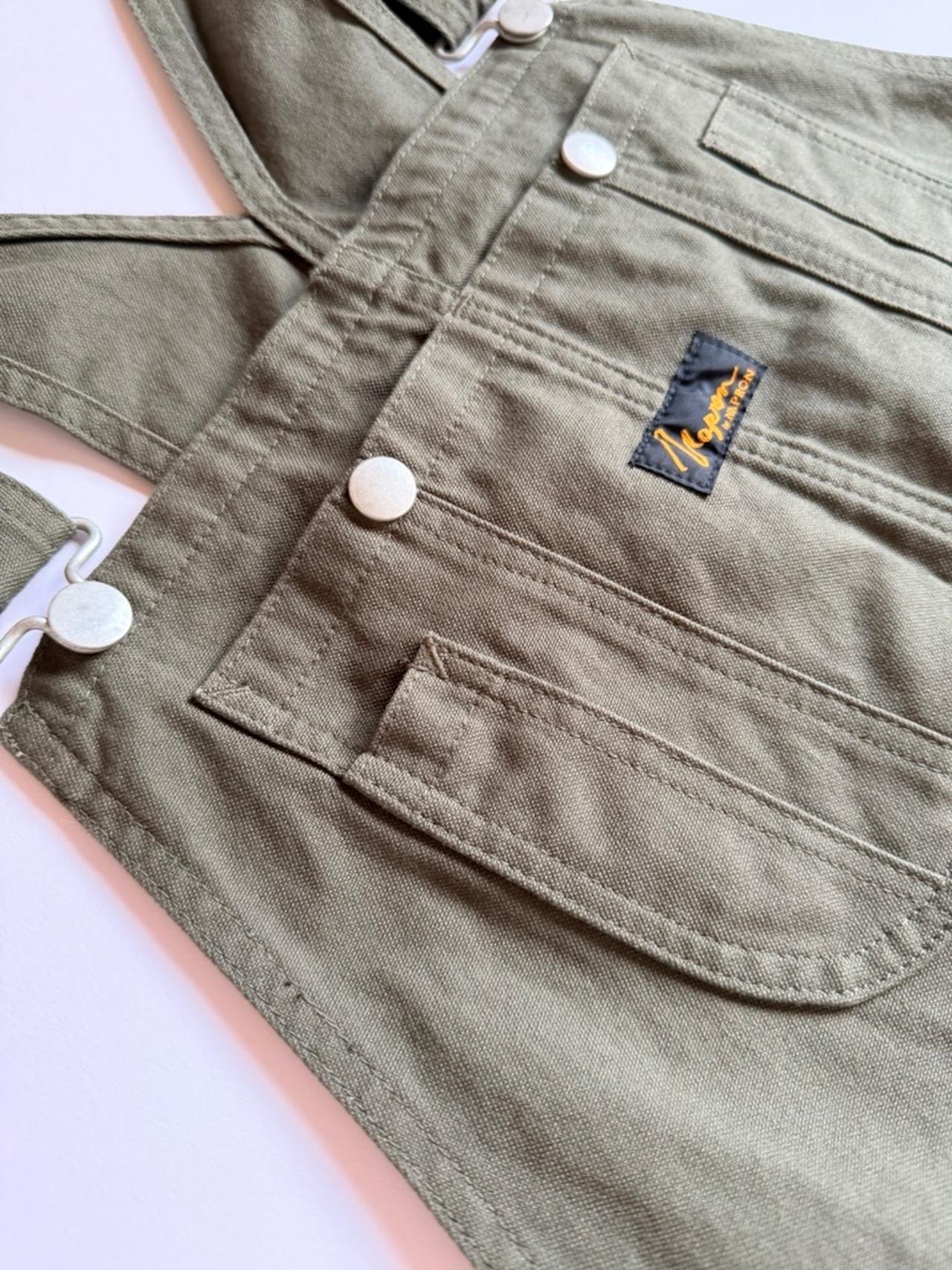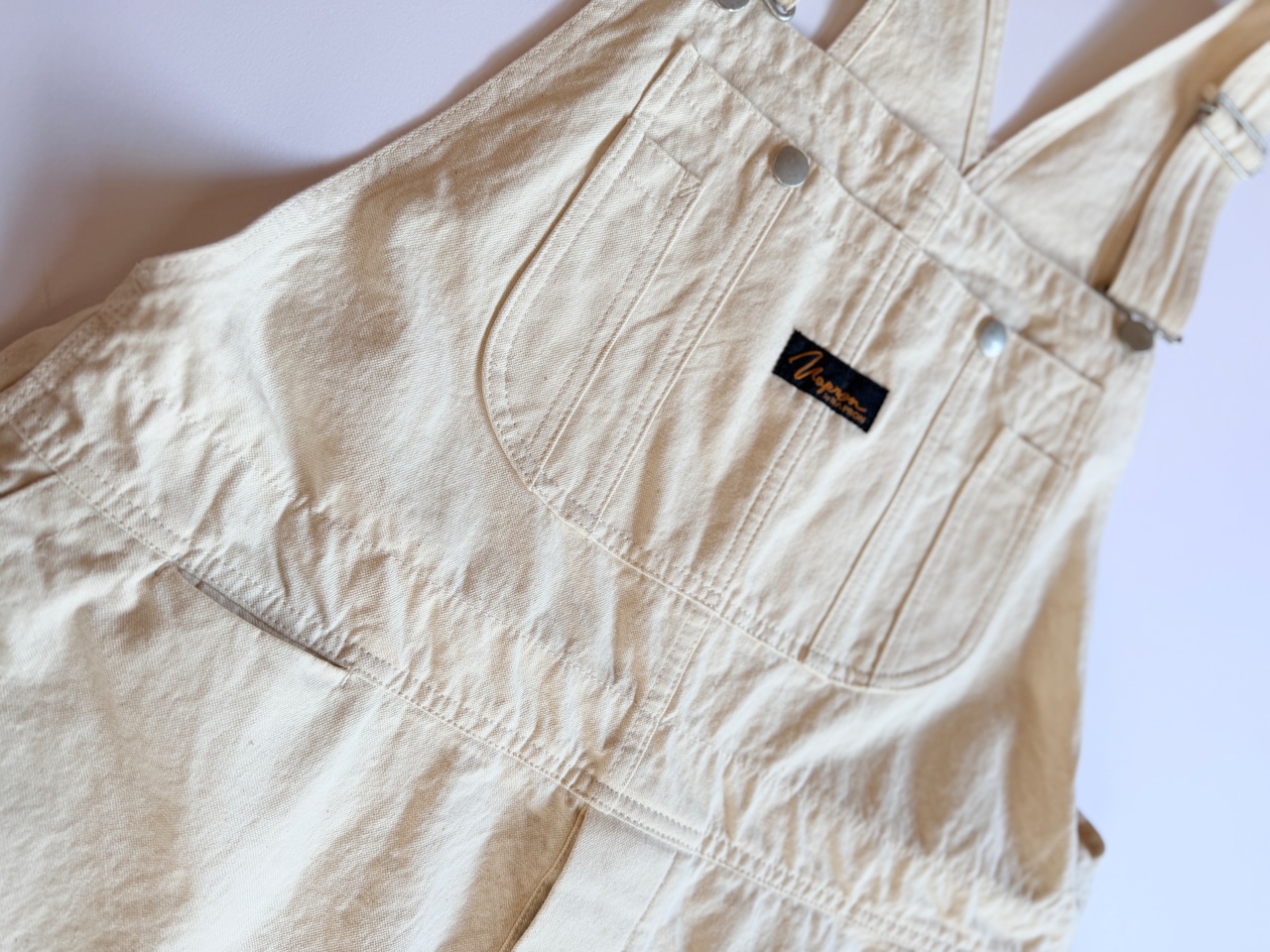 旧式力織機を使って織られたダック生地を使用しており、ドライな質感なので、夏場でも着用しやすいオーバーオールです。